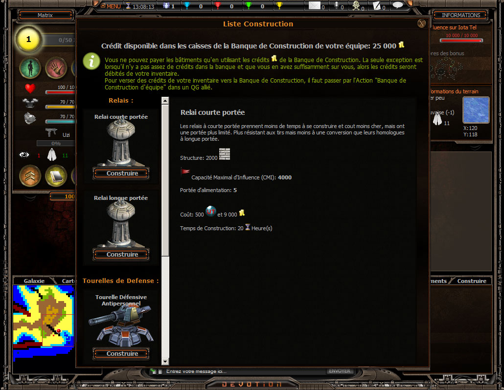 Dévotion alias "DVO", est un jeu de role par navigateur gratuit et en ligne en PHP. Mais c'est avant tout un jeu de conquête et de stratégie à travers la galaxie! Entièrement gratuit et multijoueurs, de type "wargame" (littéralement : jeu de guerre) où chacun incarnera le soldat de son choix.