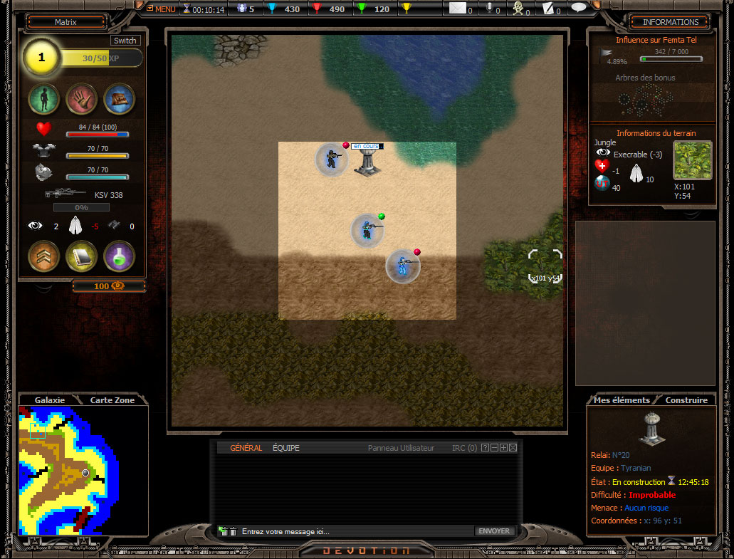 Dévotion alias "DVO", est un jeu de role par navigateur gratuit et en ligne en PHP. Mais c'est avant tout un jeu de conquête et de stratYogie à travers la galaxie! Entièrement gratuit et multijoueurs, de type "wargame" (littéralement : jeu de guerre) où chacun incarnera le soldat de son choix.